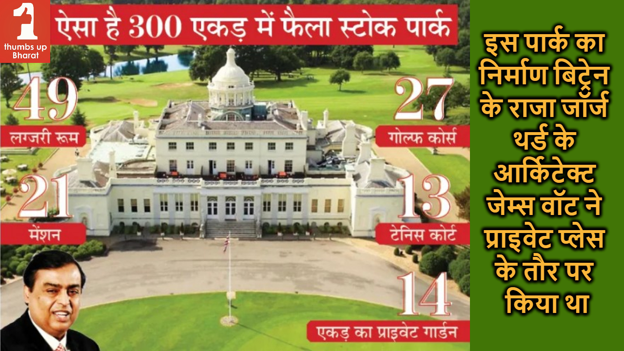 ब्रिटेन के प्रसिद्ध और प्रतिष्ठित देश क्लब स्टोक पार्क का स्वामित्व अब भारतीय अरबपति मुकेश अंबानी के पास है। 300 एकड़ में बने इस क्लब को मुकेश अंबानी ने 592 करोड़ रुपये (5.70 मिलियन पाउंड) में खरीदा है। यह अधिग्रहण रिलायंस इंडस्ट्री लिमिटेड की सहायक कंपनी रिलायंस इंडस्ट्रियल इन्वेस्टमेंट्स एंड होल्डिंग्स लिमिटेड (RIIHL) द्वारा किया गया था। कंपनी ने गुरुवार को यह जानकारी दी।