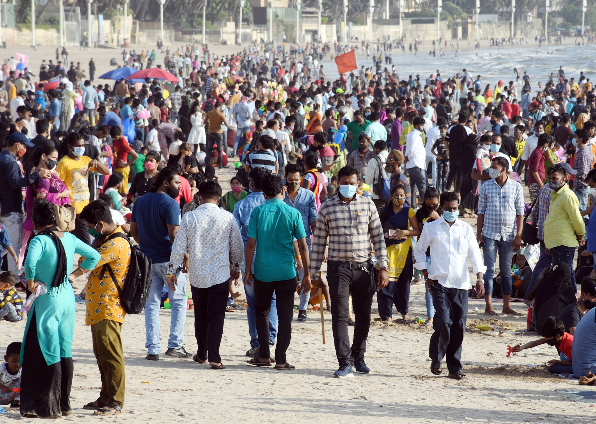 | फोटो मुंबई के जुहू बीच की‚ महाराष्ट्र में कोरोना संक्रमण सबसे तेजी से फैल रहा है‚ बावजूद इसके रविवार को लोग यहां हजारों की संख्या में छुट्टी मनाने पहुंच गए। ANI |