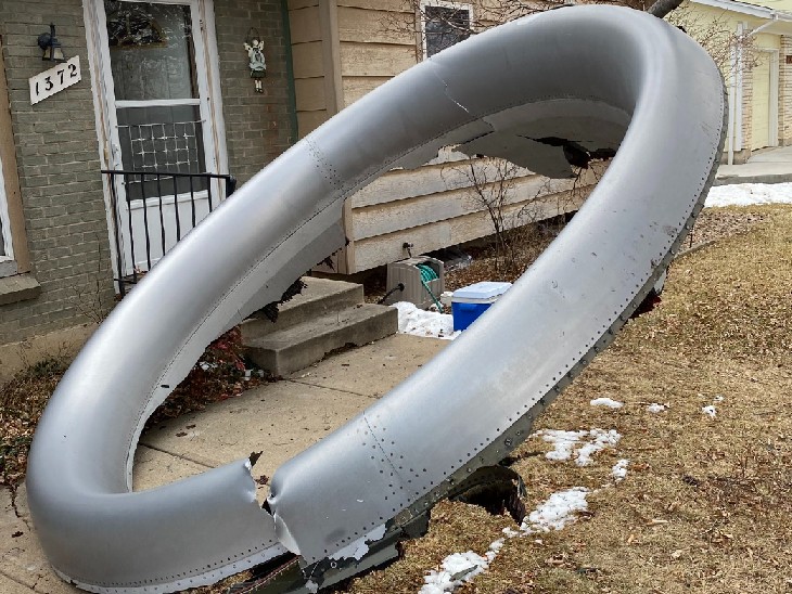 | यह इंजन का आगे का कवर है, जो टूटकर रिहायशी इलाके में गिरा। गनीमत रही कि उस समय वहां कोई नहीं था |