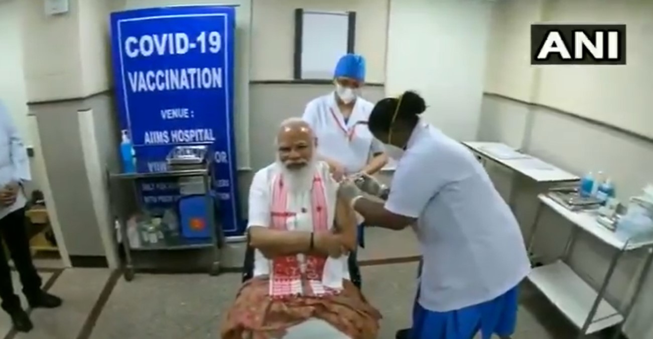 प्रधानमंत्री नरेंद्र मोदी को पहला कोरोना वैक्सीन मिला है। उन्हें भारत बायोटेक के कोवाक्सिन की खुराक से सम्मानित किया गया। वह सोमवार सुबह असम के गले में खराश के साथ दिल्ली एम्स पहुंचे। पुदुचेरी की सिस्टर पी निवेदा ने यहां मोदी का टीकाकरण किया, जिस दौरान केरल की सिस्टर रोसमम्मा अनिल पास में खड़ी थीं। 27 मार्च से 6 अप्रैल तक इन तीन राज्यों में विधानसभा चुनाव होने हैं। सिस्टर पी निवेदा ने बाद में मीडिया को बताया कि टीका लगने के बाद प्रधानमंत्री ने कहा, “हालांकि यह लगाया गया था, यह ज्ञात नहीं था।”