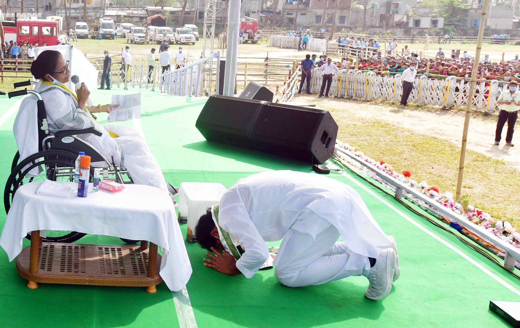 मंगलवार को नंदीग्राम में चुनाव प्रचार के आखिरी दिन, ममता बनर्जी लगभग 20 दिनों के बाद एक व्हीलचेयर से निकलीं, जिसमें एक पैर बंधा हुआ था। दरअसल, नंदीग्राम के टेंगुआ में एक रैली के दौरान राष्ट्रगान की तैयारी चल रही थी। इस दौरान उनके सहयोगियों ने उन्हें खड़े होने का सुझाव दिया। पहले तो ममता को खड़े होने में कठिनाई महसूस हुई, लेकिन बाद में कुछ लोगों के समर्थन से वह खड़ी हुईं और राष्ट्रगान गाया।