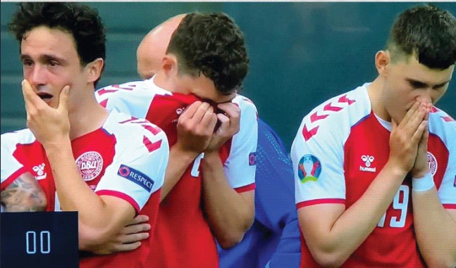 यूरो कप 2020 में डेनमार्क और फ़िनलैंड के बीच आज का दूसरा मैच मेडिकल इमरजेंसी के कारण स्थगित कर दिया गया था। मैच कोपेनहेगन के पेरकेन स्टेडियम में खेला जा रहा था। मैच के दौरान 29 वर्षीय डेनिश स्टार खिलाड़ी Christian Eriksen 43वें मिनट में बेहोश हो गए। मेडिकल टीम को तुरंत मैदान पर बुलाया गया और उन्हें इलाज के लिए अस्पताल ले जाया गया है. इस घटना के बाद उनके साथी खिलाड़ी और फैंस रोने लगे।