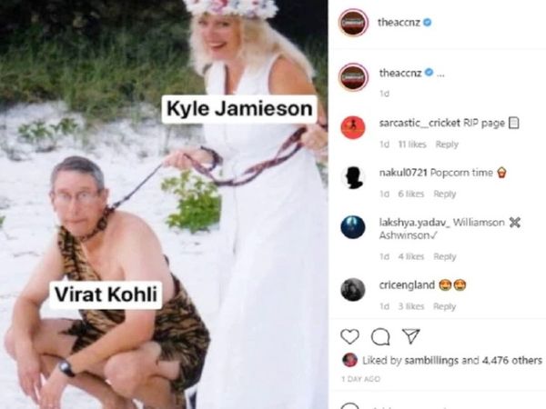 महिला ने उसकी रस्सी पकड़ रखी है। वेबसाइट ने शख्स को विराट कोहली और महिला को न्यूजीलैंड के तेज गेंदबाज काइल जेमिसन बताया है।
